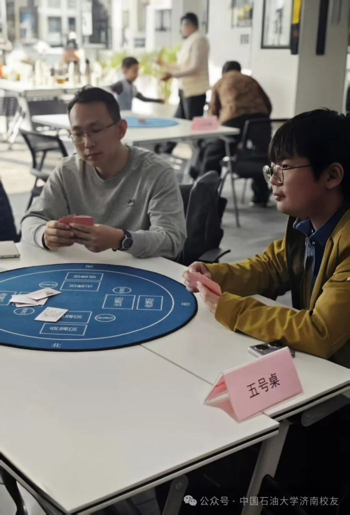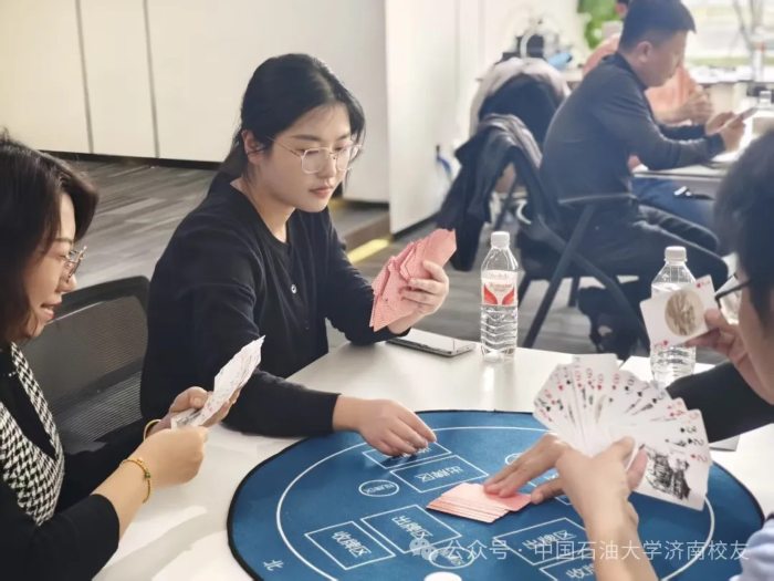 春水初生,燕語呢喃。2025年3月9日下午,“石大情,摜軍夢”第一屆中國石油大學濟南校友會摜蛋聯誼賽在濟高校友會客廳鳴鑼開戰。這場醞釀已久的智慧盛宴,2024年初便埋下伏筆:校友棋牌交流群星火燎原;2025年新春更見匠心:以校友鋼筆畫作品為圖案的定制牌具驚艷亮相,將石油人的藝術情懷鐫刻于方寸之間。