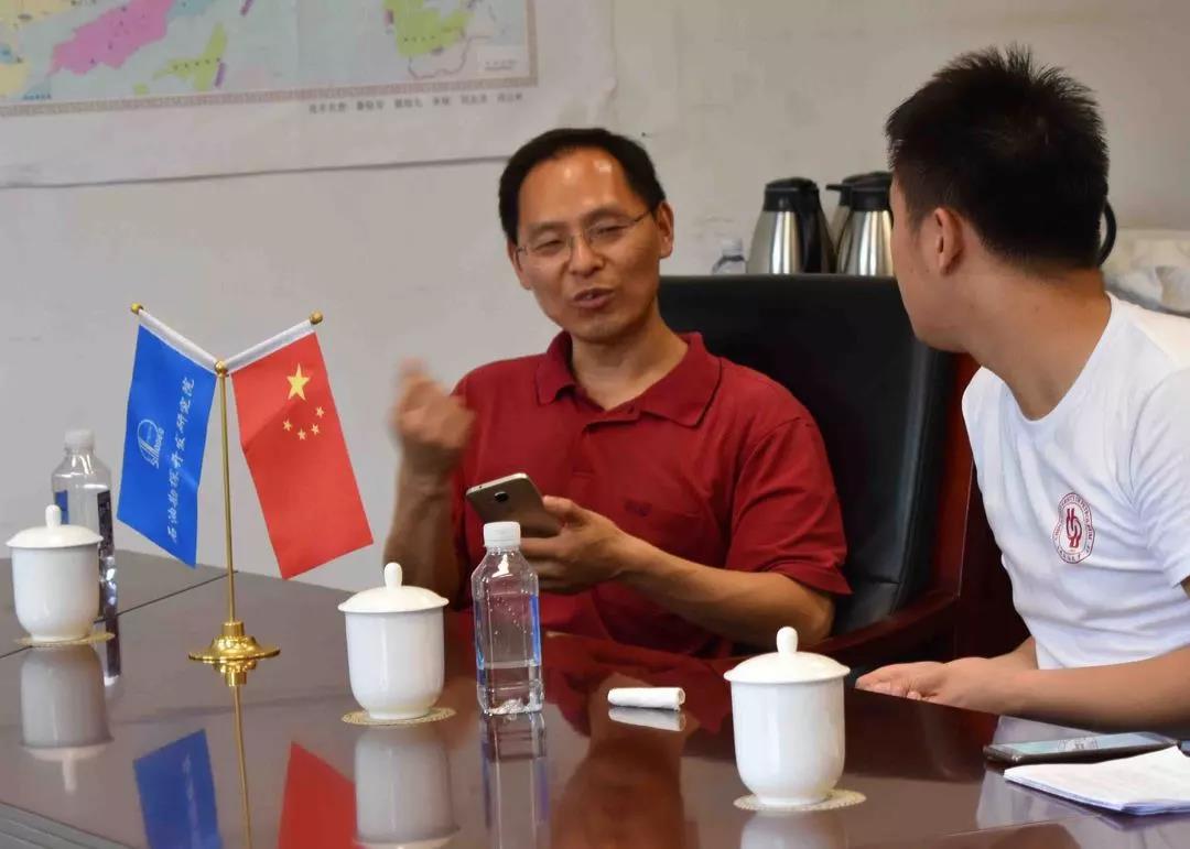 “訪校友,迎校慶”暑期社會實踐活動第二團隊—“尋石問道”校友尋訪實踐隊由地球物理與信息工程學院五名本科生和一名指導老師組成。在指導老師的帶領下,小組成員來到中石化石油勘探開發研究院,對張杰校友進行了尋訪。