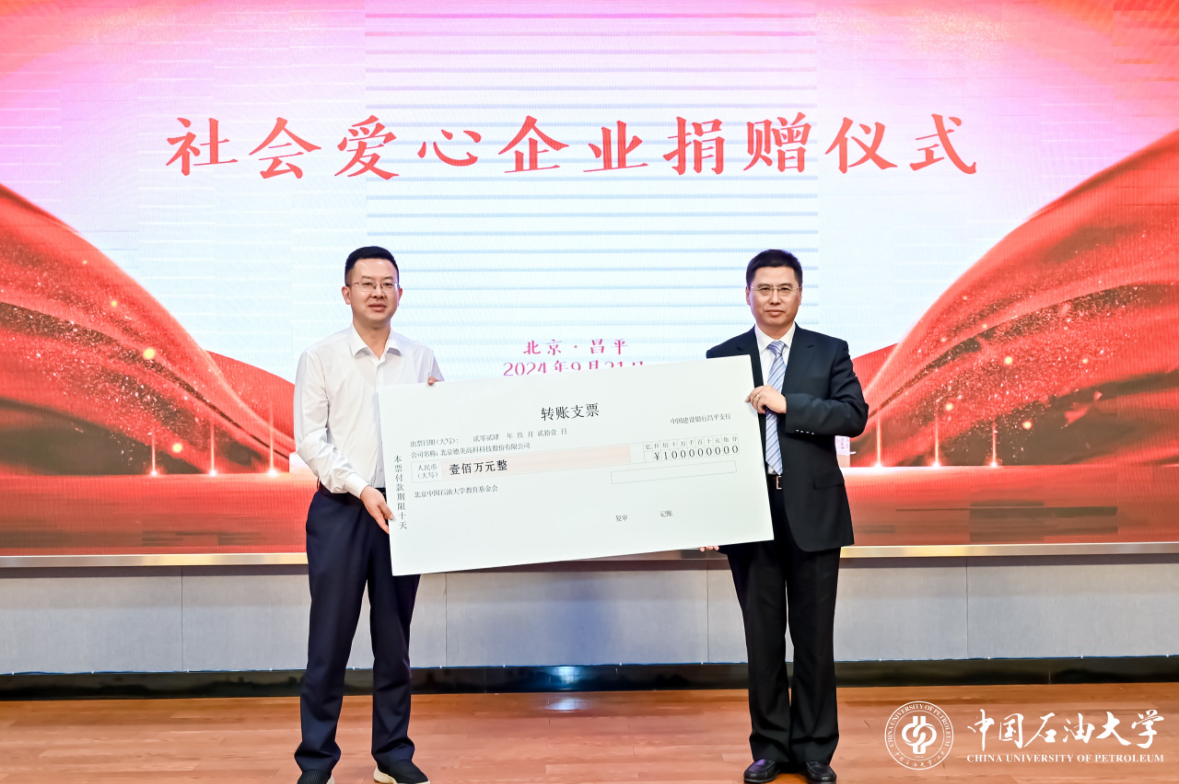 會上,北京德美高科科技股份有限公司董事長張德斌、山東祺龍海洋石油鋼管股份有限公司總經理孟慶濱分別代表兩家愛心企業,為學校捐贈100萬元、50萬元。文永紅代表北京中國石油大學教育基金會接受捐贈并頒發捐贈證書。