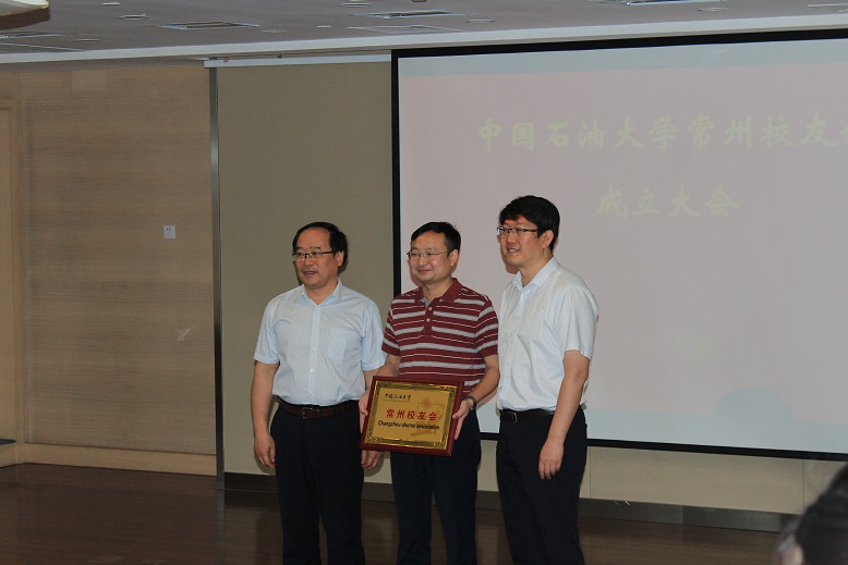 韓尚峰、姚軍為中國(guó)石油大學(xué)常州校友的成立授牌。