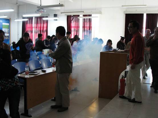 最后,為鞏固培訓效果和增強實效性,通過制造煙感,模擬火災現場,即時考驗了參加培訓人員的逃生意識、初起火險應急處置能力,通過演練,參與培訓人員基本能夠做到:不慌不亂,第一時間安全有序的撤離火災現場。