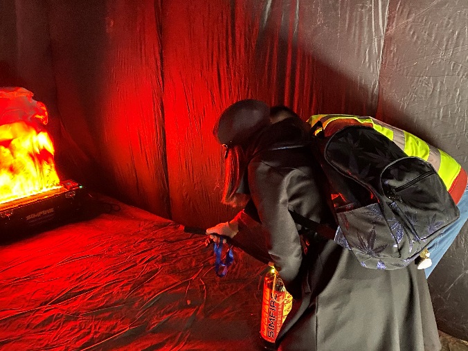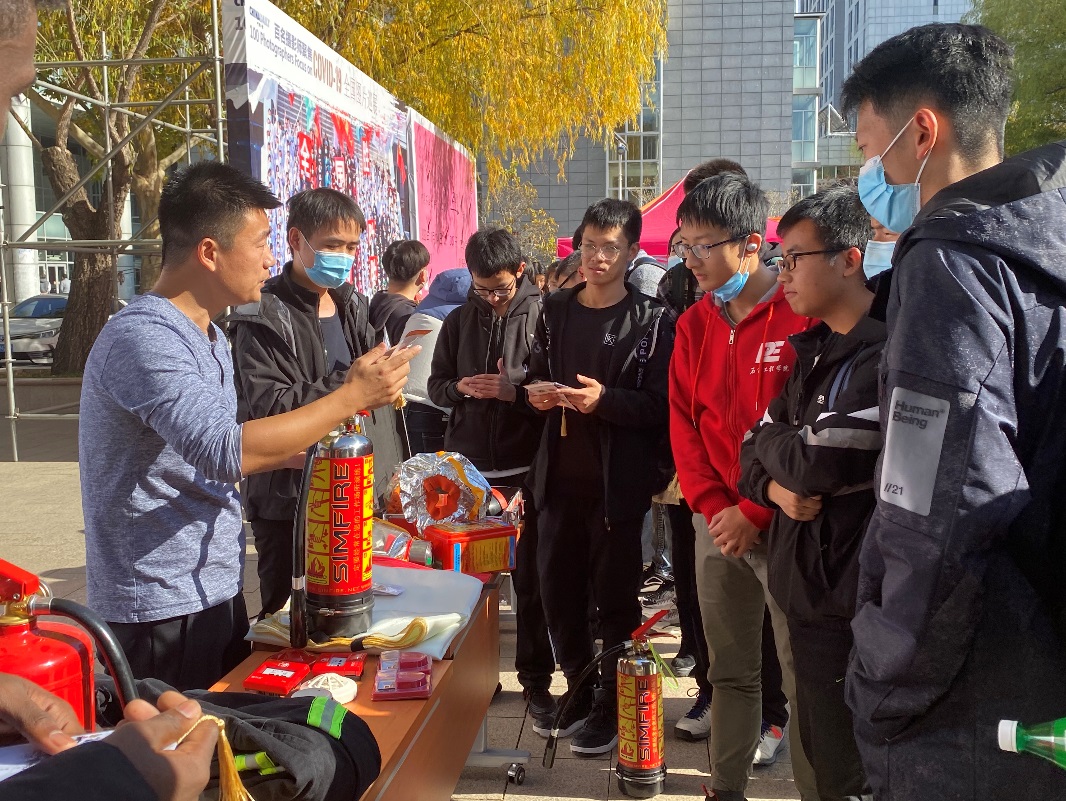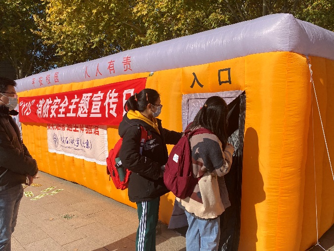 活動現場設置了消防安全知識答題、消防應急箱演示教學、滅火器體驗與煙霧逃生體驗四項活動,工作人員向現場師生講解了滅火器、滅火毯的使用方法,介紹了煙感、手動報警器等常見的消防報警設備以及消防應急箱等裝備;并依托模擬滅火實訓和煙霧逃生裝置,現場人員通過模擬火災疏散演練、體驗滅火操作,進一步掌握了消防安全知識與技能。