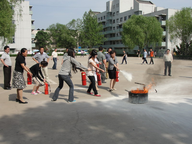 培訓(xùn)開始,保衛(wèi)處工作人員結(jié)合2010年以來學(xué)校發(fā)生的火情火險(xiǎn),對(duì)消防基礎(chǔ)知識(shí)、火災(zāi)現(xiàn)場(chǎng)如何緊急疏散、如何自救逃生、如何撲救初期火災(zāi),滅火器如何使用等內(nèi)容進(jìn)行了詳細(xì)講解。隨后,在廣場(chǎng)上點(diǎn)燃了火盆,機(jī)關(guān)各部門參訓(xùn)人員紛紛拿起滅火器進(jìn)行滅火實(shí)戰(zhàn)演練。