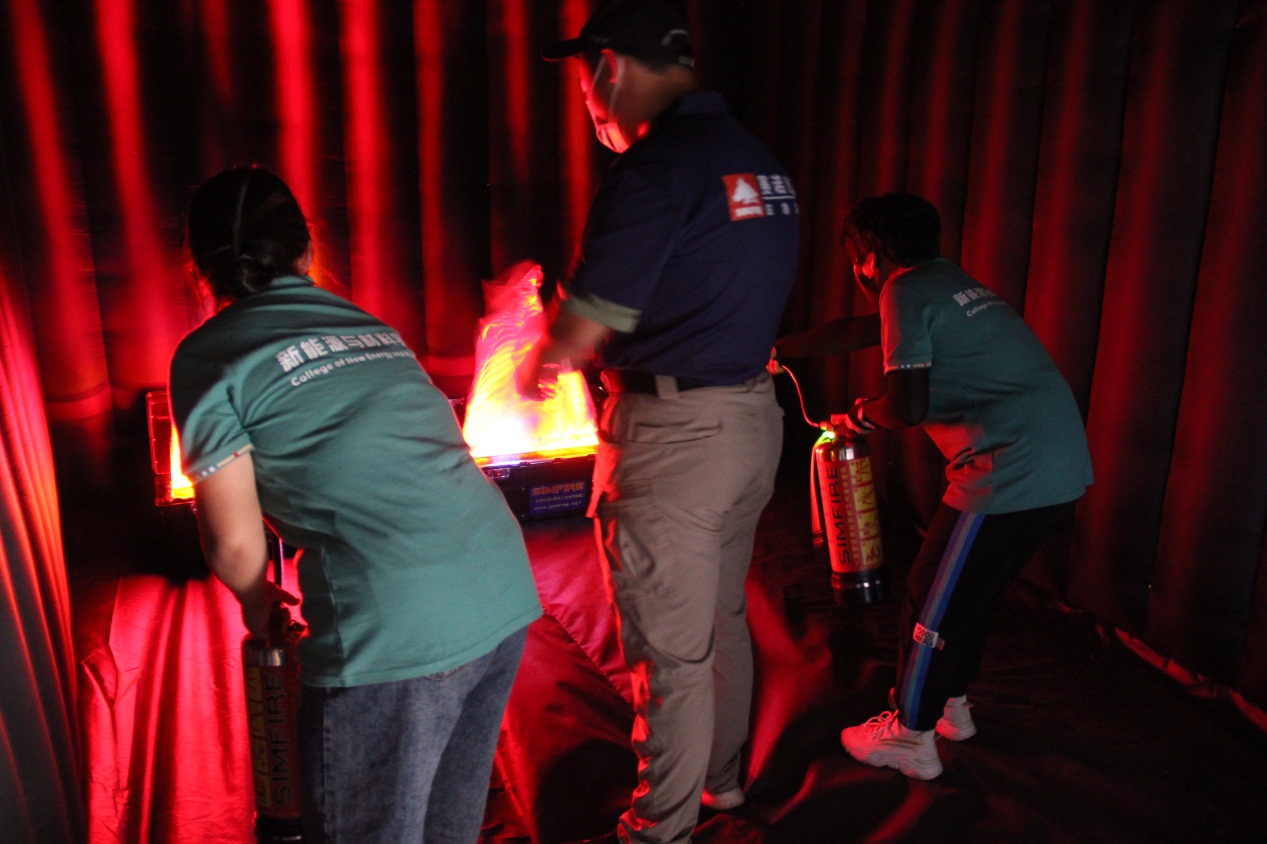 在消防安全常識講解區,教官向同學們詳細講解了消防器材的使用方法和疏散逃生技巧。在模擬體驗區,每名學生現場操作高仿真電子模擬滅火器進行考核,掌握使用滅火器的要領,體驗火場滅火的技巧,而后紛紛彎腰低身,捂住口鼻,快速通過“濃煙彌漫”逃生通道,有序地抵達“安全地帶”,進一步熟悉掌握“彎腰、低姿、捂口鼻、看指示牌”的逃生要領。