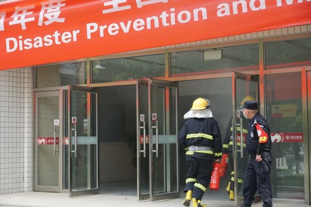 本次消防演練模擬的場景是留學生公寓A座二層廚房因學生做飯不慎發生油鍋起火。演練現場煙霧觸發感煙探測器報警,學校中控室接警確認火情后立即啟動應急處置預案,技術保障組啟動公寓消防廣播、聲光報警,疏散組開啟所有疏散門,引導留學生疏散至安全區域集合。