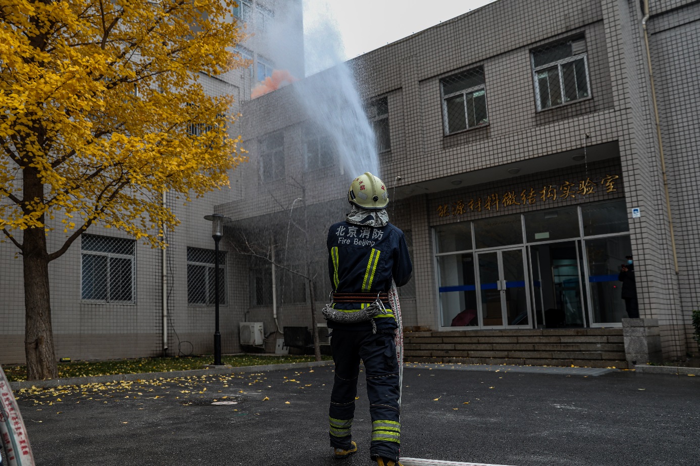 當發現火勢漸大難以控制時,工作人員立即撥打“119”火警電話,昌平消防救援支隊永安中隊接警后,迅速派消防車趕赴火場,就位后鋪設水帶,朝向著火區域噴水滅火,迅速壓制火情。