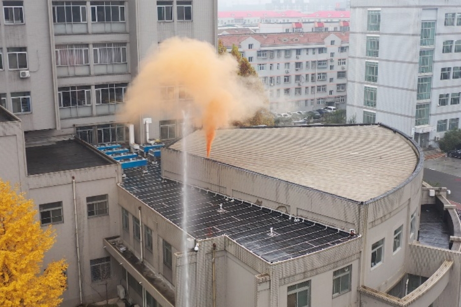 本次消防演練模擬的場景是學校地質樓實驗室因學生操作不慎引發火災,引燃相鄰樓層,并有零星火焰散落到裙樓屋頂引燃易燃物,造成火勢逐步擴大,需立即啟動應急預案,組織樓內人員疏散。