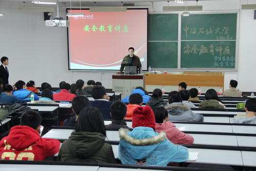 12月19日晚,保衛處聯合校團委、校學生會在三教105教室舉辦了安全教育講座,學生社團等學生骨干100余人前來聽講。