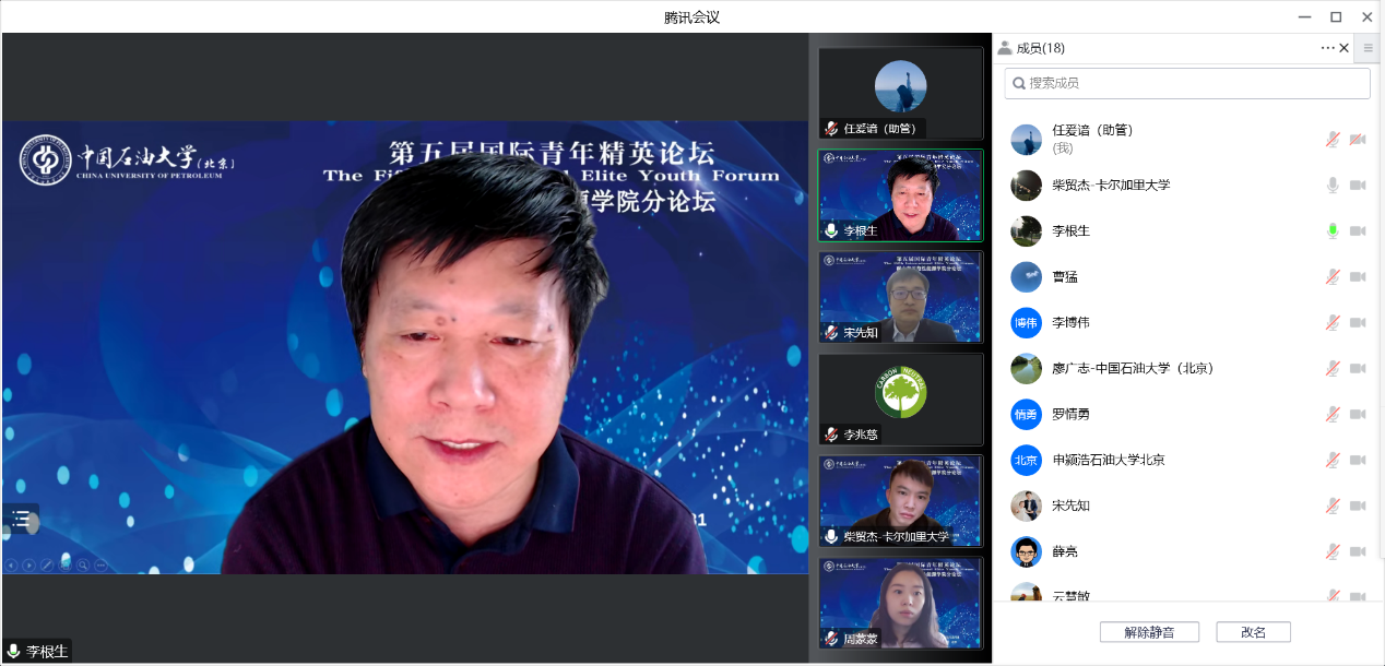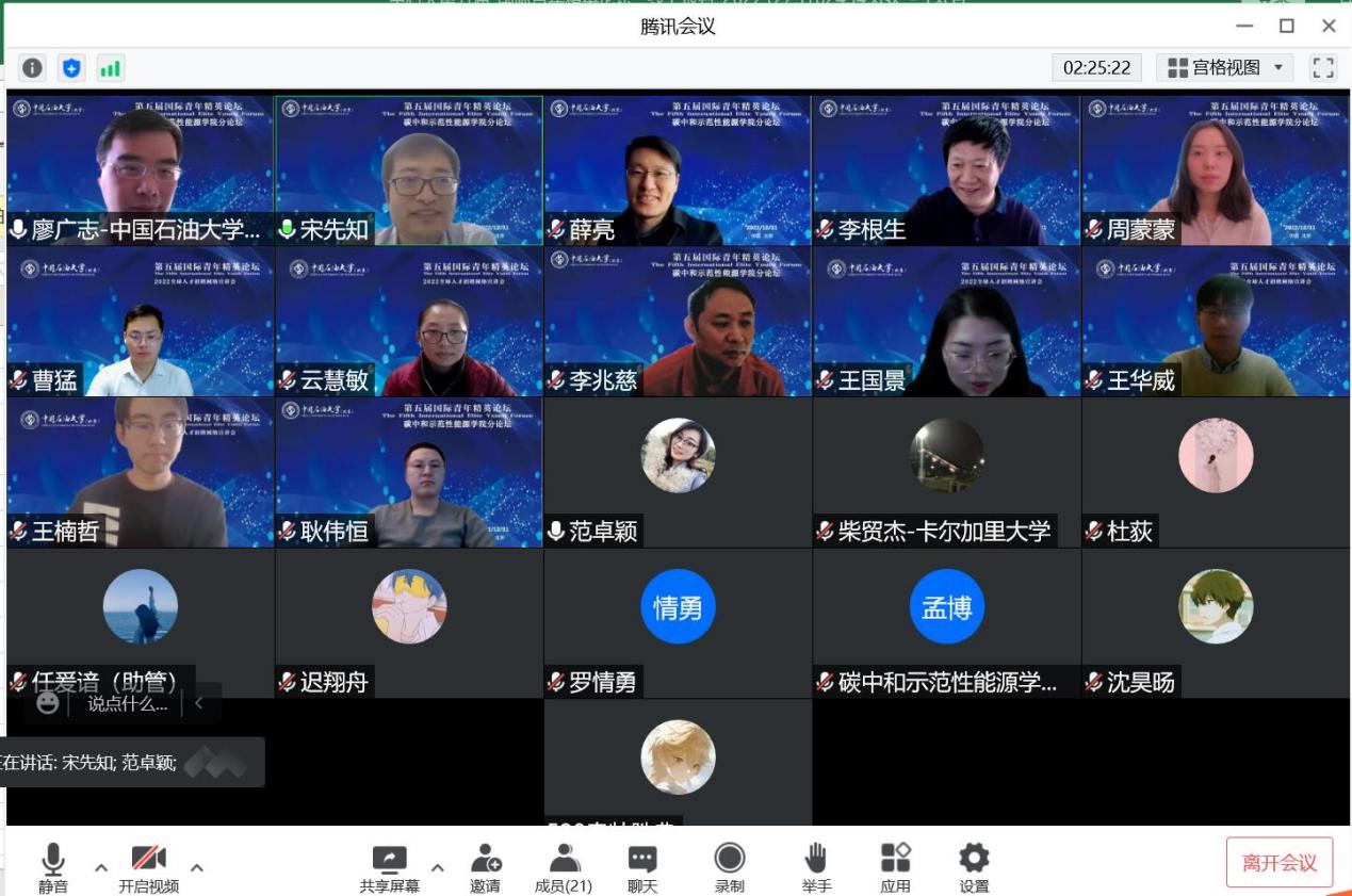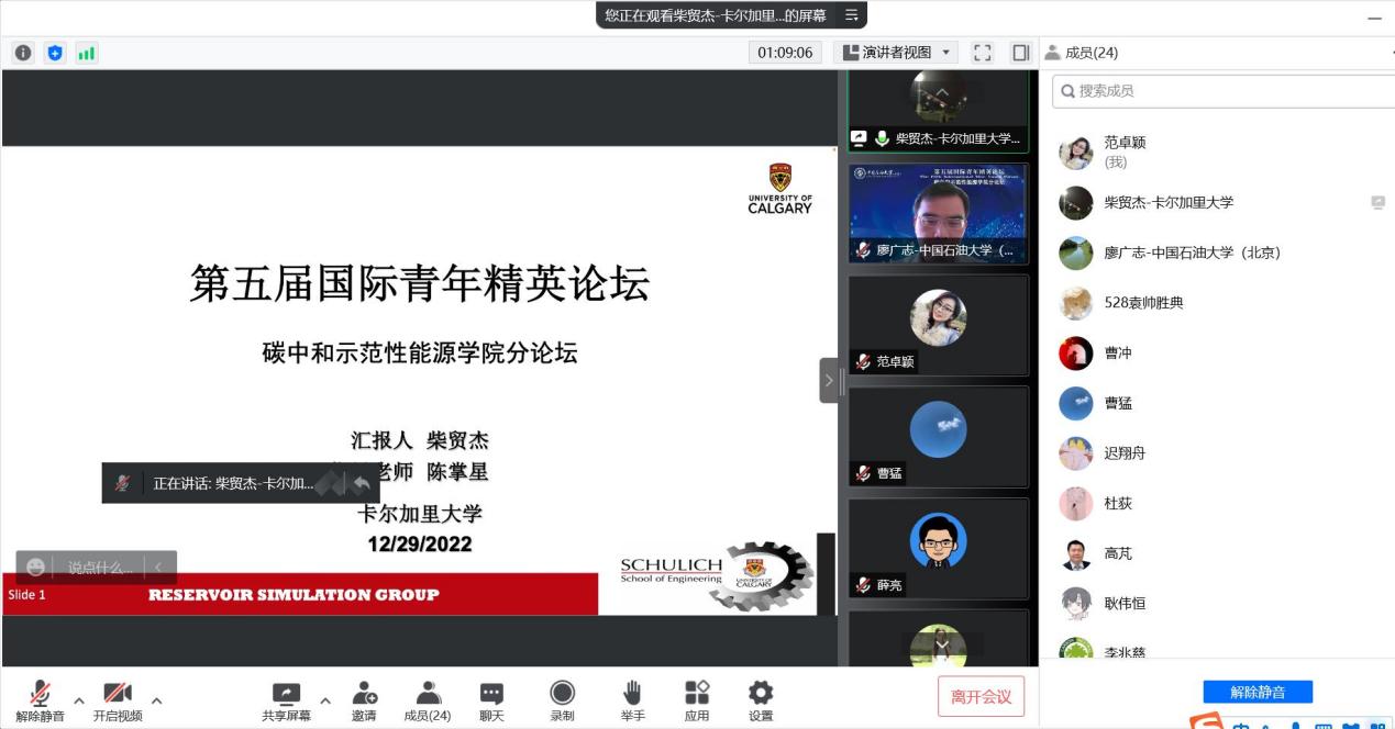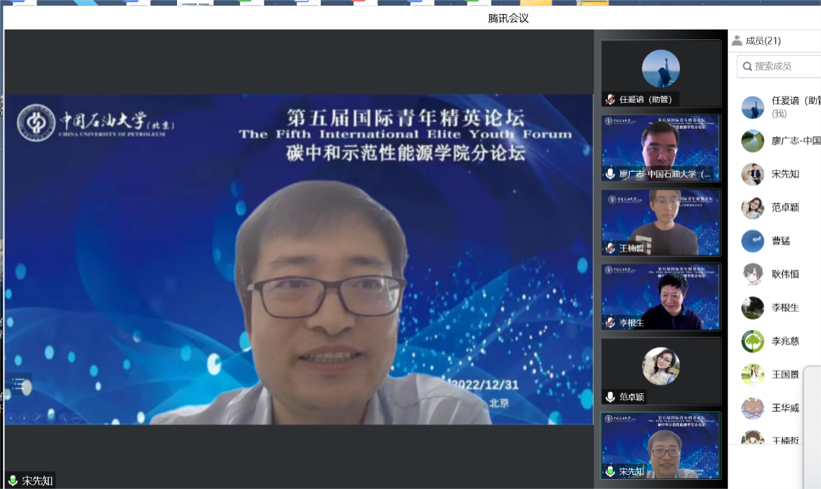 第五屆國際青年精英論壇碳中和示范性能源學(xué)院分論壇于2022年12月31日以線上會議方式在京舉辦,碳中和示范性能源學(xué)院院長李根生院士,執(zhí)行院長宋先知,副院長李兆慈、申潁浩、廖廣志、羅情勇、薛亮,青年教師代表周蒙蒙、楊韻,學(xué)院相關(guān)人員和十位海內(nèi)外青年學(xué)者等二十余人參加會議。會議由學(xué)院執(zhí)行院長宋先知教授主持,學(xué)術(shù)論壇和交流環(huán)節(jié)由廖廣志副院長主持。