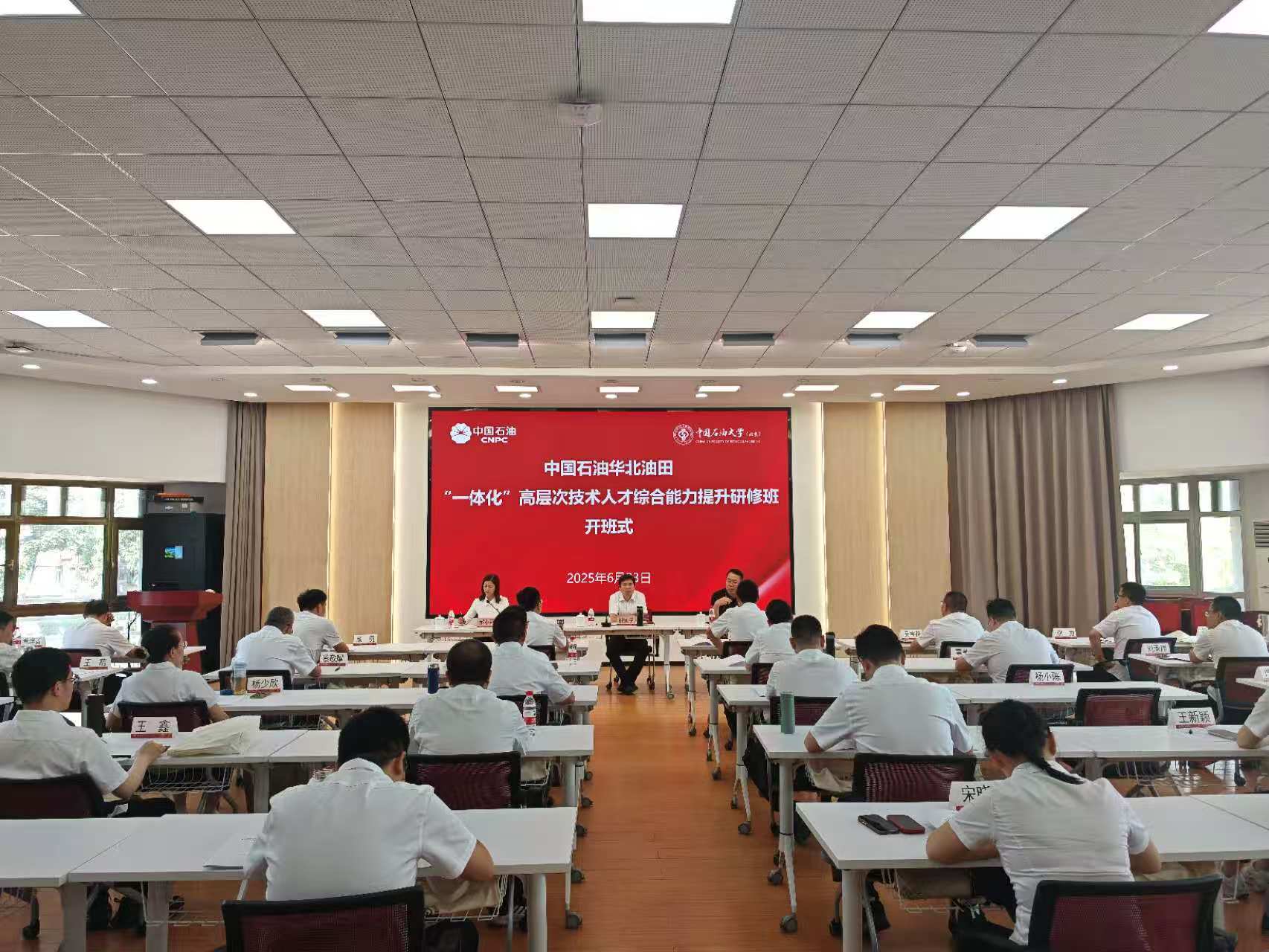 2025年6月23日,中國石油華北油田"一體化"高層次技術人才綜合能力提升研修班(勘探開發方向)在我校東校園培訓基地正式啟動。華北油田人力資源部副部長謝佩宇、我院副院長李水出席開班式,開班式由我院高層次人才發展中心主任郝小莉主持。李水在致辭中介紹了學校在能源領域的深厚積淀,希望大家充分利用培訓機會,全方位提升自身能力。謝佩宇對學員提出期望,希望大家珍惜機會、學以致用、嚴守紀律。