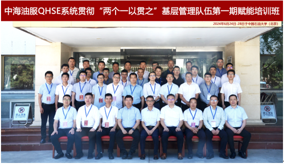 2024年6月24日,由我校承辦的中海油服QHSE系統貫徹“兩個一以貫之”基層管理隊伍第一期賦能培訓班順利開班。中海油田服務股份有限公司質量安全部總經理周治春、中國石油大學(北京)網絡與繼續教育學院院長陳春茂出席開班式并講話,開班式由中海油田服務股份有限公司質量安全部崗位經理劉廣宇主持。