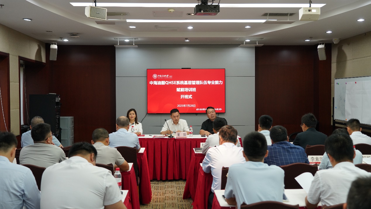 7月28日,中海油服QHSE系統基層管理隊伍專業能力賦能培訓班,在我校翠宮正式開班。中海油田服務股份有限公司質量安全部公共安全分析與管控崗位經理夏熠、我院副院長李水出席開班式并講話,來自中海油服全國各作業區域的40名HSE管理骨干參加培訓。