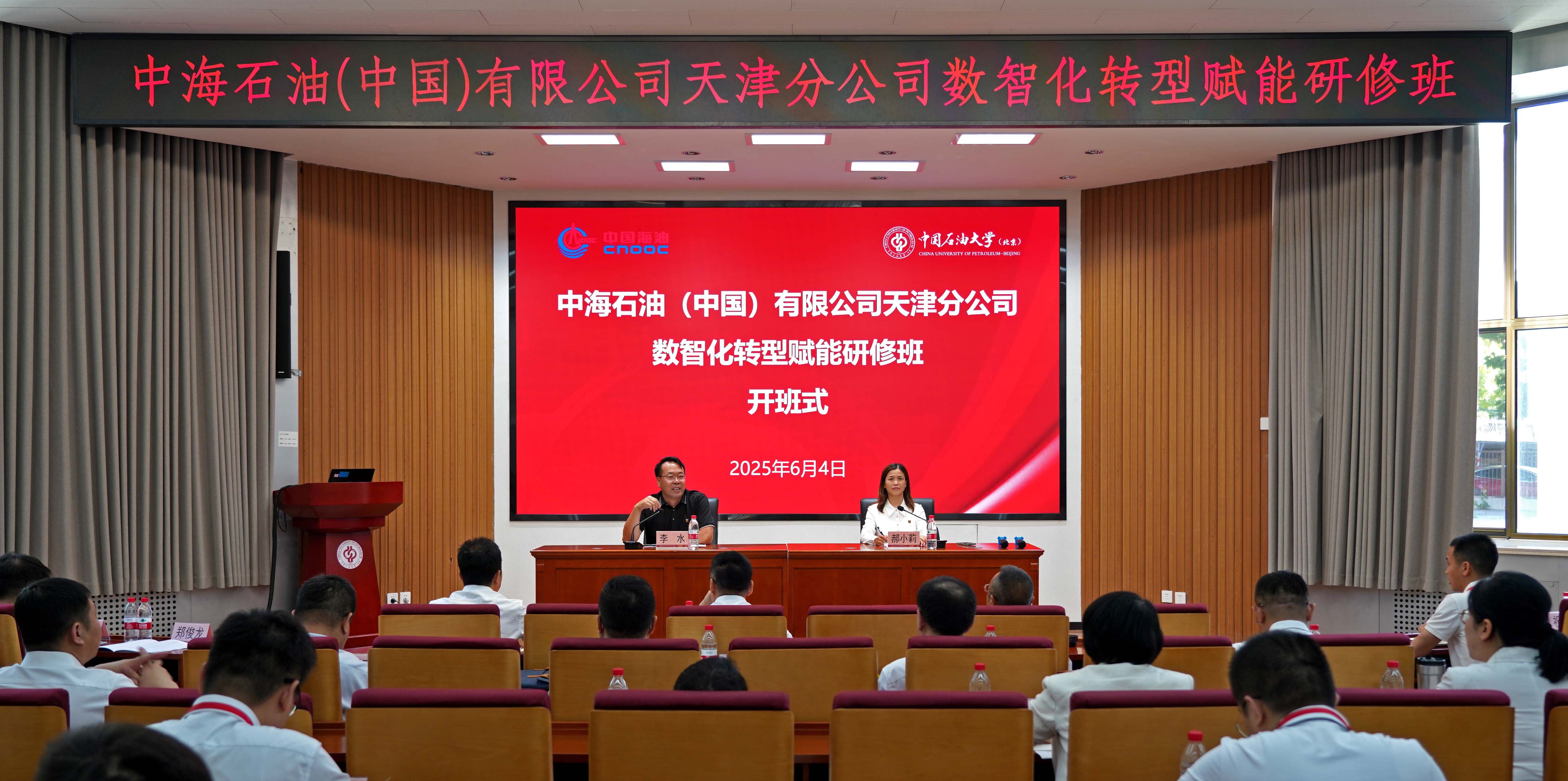 2025年6月4日,中海石油(中國)有限公司天津分公司數(shù)智化轉型賦能研修班在中石大順利開班。38名來自天津分公司各相關單位的業(yè)務骨干參加本次培訓,我院副院長李水出席開班式并致辭。