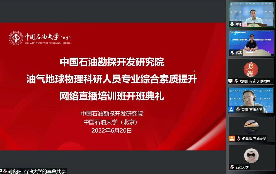 2022年6月20日,由我校網絡與繼續教育學院承辦的“中國石油勘探開發研究院油氣地球物理科研人員專業綜合素質提升網絡直播培訓班通過網絡直播順利開班。中國石油勘探開發研究院技術培訓中心閆偉鵬主任,中國石油大學(北京)網絡與繼續教育學院李水副院長出席了開班儀式并做了培訓動員。