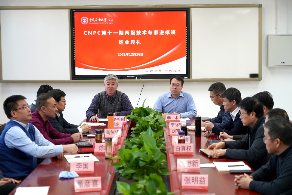2021年12月16日,由中國石油大學(北京)網絡與繼續教育學院承辦的“中國石油天然氣集團有限公司第十一期兩級技術專家進修班”在東教樓802舉行結業典禮,中國石油大學(北京)網絡與繼續教育學院院長陳桂剛出席結業典禮并講話,結業典禮由網絡與繼續教育學院副院長李水主持。