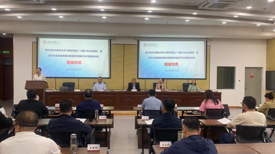 4月11日下午,由中國石油大學(北京)網絡與繼續教育學院承辦的克拉瑪依市直機關“學習貫徹黨的二十屆三中全會精神,推動機關黨建高質量發展”基層黨組織書記專題培訓班順利舉辦結業儀式。此次培訓班旨在深入學習貫徹黨的二十屆三中全會精神,提升克拉瑪依市直機關基層黨組織書記的政治素養與業務能力,以高質量黨建引領機關各項工作再上新臺階。