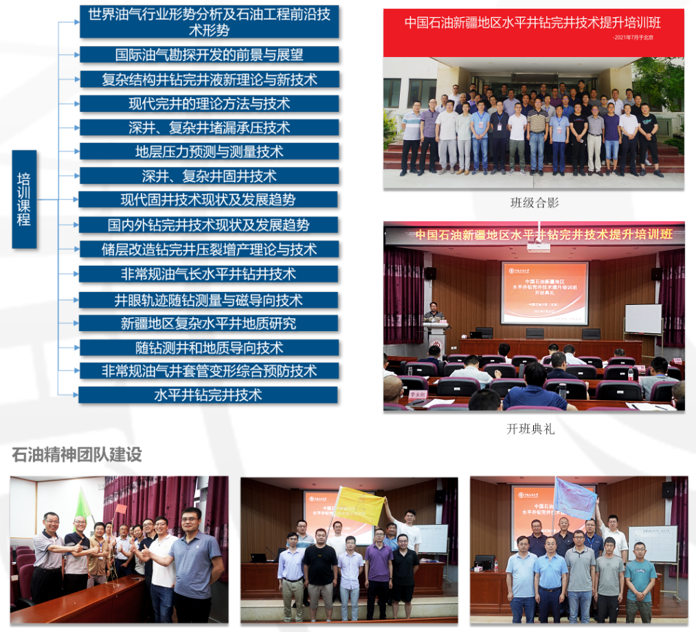 項目涉及國內(nèi)外鉆井技術(shù)最新前沿進展、水平井及多分支井技術(shù)、復(fù)雜地層井壁穩(wěn)定技術(shù)、國內(nèi)外鉆井液新進展、欠平衡鉆井技術(shù)與應(yīng)用、超深井技術(shù)與應(yīng)用、氣井技術(shù)研究與應(yīng)用、復(fù)雜固井技術(shù)、國內(nèi)外鉆井新工具研究與應(yīng)用等內(nèi)容,提高參培人員的理論水平和科技創(chuàng)新能力,為企業(yè)專業(yè)技術(shù)骨干人員儲備奠定基礎(chǔ)。