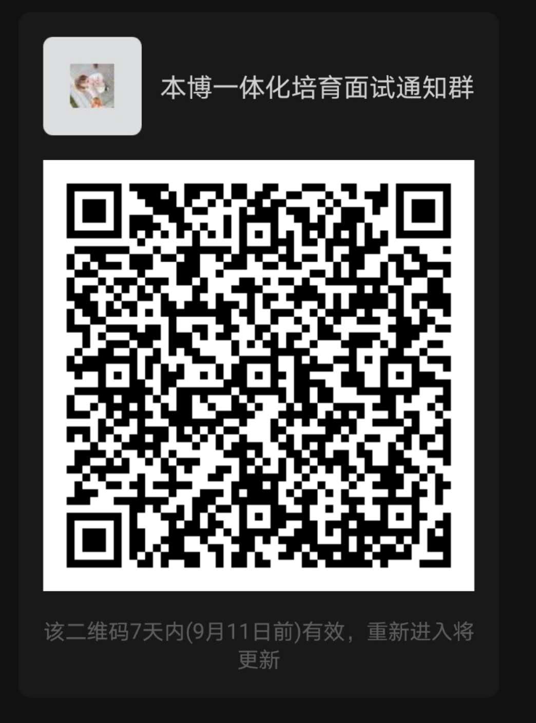 請培養考核復試入選名單上的同學進入本博一體化培育面試通知群: