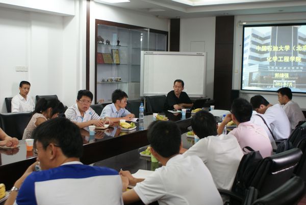 郭緒強(qiáng)教授首先講述了我校發(fā)展的歷史,并介紹了化工學(xué)院的基本信息、學(xué)術(shù)成果、最新的研究進(jìn)展以及主要的研究方向,其中成果中介紹了包括PV旋風(fēng)分離器在內(nèi)的十項(xiàng)成果。在郭教授介紹完學(xué)院的情況后,對(duì)外校學(xué)員的生活學(xué)習(xí)情況進(jìn)行了了解,并且為其解答了就辦學(xué)、科研、招生等方面提出的相關(guān)疑問,進(jìn)一步加深了外校同學(xué)對(duì)我校的認(rèn)識(shí)和了解。