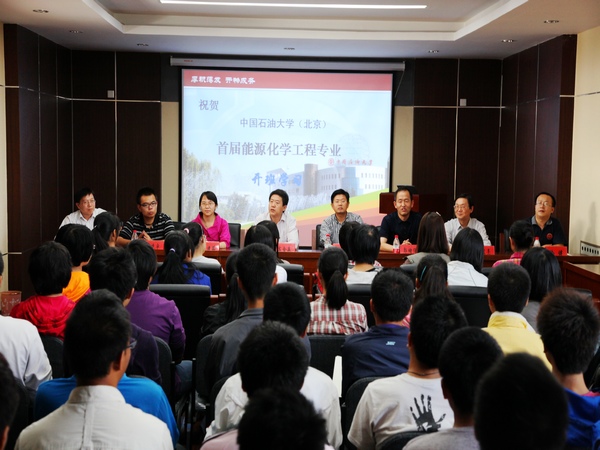 會議由教學副院長孟祥海主持,教務處詹亞力處長、化學工程學院郭緒強書記和高金森院長分別進行了講話。詹亞力向同學們介紹了學校多年來對于能源化學工程專業的申報歷程,強調了學校對于新專業建設的重視,希望同學們珍惜來之不易的求學機會,努力提升自己能力,早日成為國家棟梁。化工學院分黨委書記郭緒強為同學們介紹了開設能源化學工程專業的背景,就當前國內的能源現狀,以及專業的發展前景做了一個較為全面的闡述,解開了同學們心中的諸多疑惑。最后,化工學院院長高金森向同學們順利通過高考,并以優異的成績考入中國石油大學表示了祝賀,他希望同學們盡快適應大學的學習生活,以踏實的學習作風,端正的學習態度來迎接未來的挑戰。
