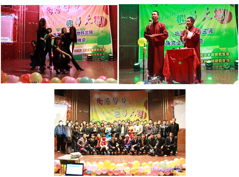 晚會開始,劉洛夫首先致辭,表示非常高興能夠參加三院研究生共同攜手舉辦的晚會,并希望廣大研究生能夠在多面加強交流并預祝晚會成功。接著,晚會在一段精彩的街舞中拉開序幕,動感的音樂,流暢嫻熟的舞蹈動作點燃起了同學們的熱情。隨后,熟悉動聽的歌曲,精彩熱辣的舞蹈贏得了全場觀眾的陣陣喝彩。中場互動游戲環節以及北化同學帶來的相聲表演,更是引得觀眾爆笑不斷。
