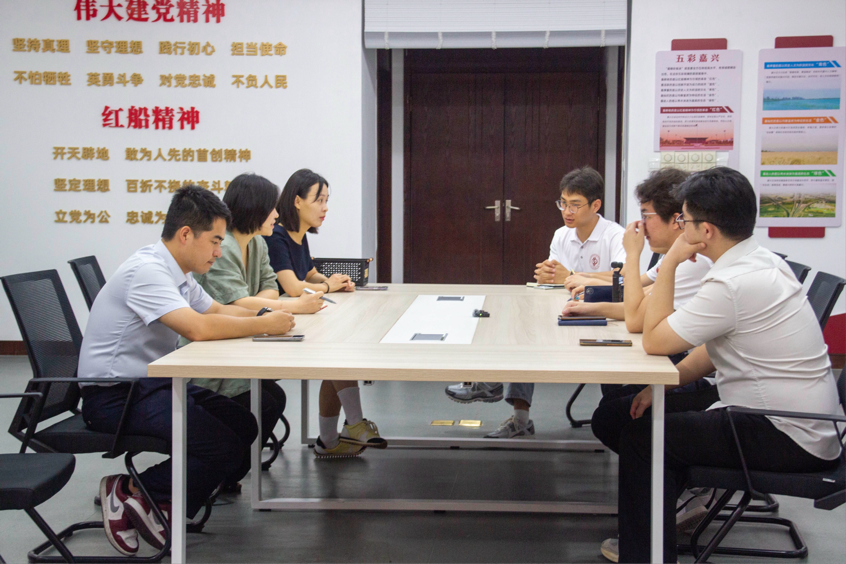 隨后,實踐團成員與革命紀念館工作人員進行座談。會上,大家了解到南湖革命紀念館在展館管理、運行上始終堅持以高質量發展為目標,以隊伍建設為基礎,努力打造宣講教育品牌。談到紀念館如何適應新時代的發展時,講解員趙洋老師回答:“如今南湖革命紀念館在數字化、情景化與社會化等方面取得了巨大的成就,如打造數字紅船、網上展館、排演話劇,開展講解直播并上線一系列思政微視頻,講述革命文物故事。在信息傳遞十分高效的數字化時代,我們會努力打造‘沒有圍墻的紀念館’。”