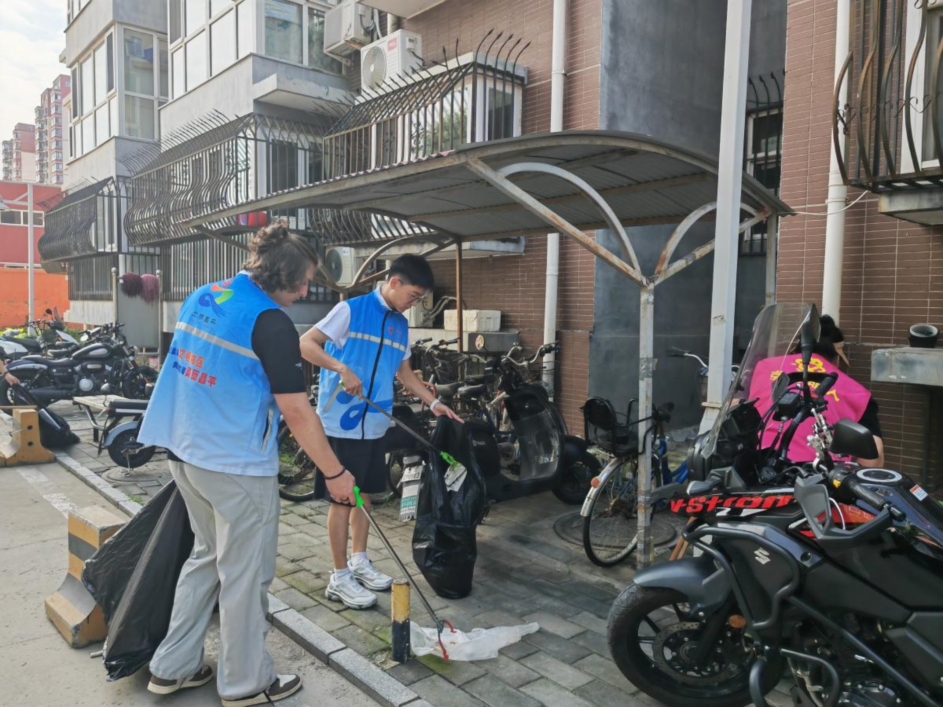 實踐團成員與中亞留學生一起走進社區居民的日常生活,在昌平區裕祥社區舉辦“文明養犬,清潔同行”公益活動,守護社區環境清潔與和諧,用實際行動培植深厚友誼。