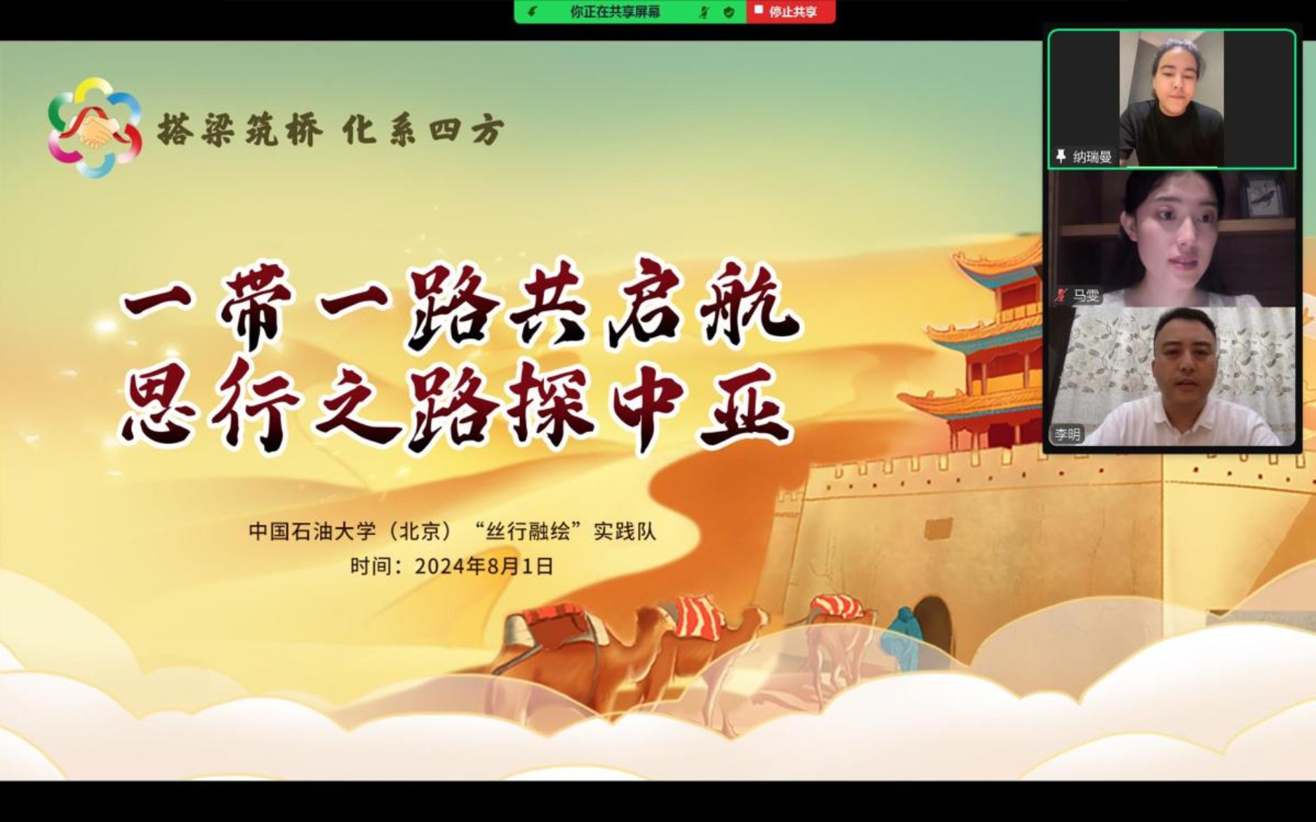 為深入學習貫徹習近平總書記給中國石油大學(北京)中亞留學生的復信精神,8月,中石大化學工程與環境學院組建“絲行融繪”暑期社會實踐團隊,組織中國學生和留學生在西安和北京兩地開展社會實踐活動,從“弘揚絲路精神”、“講好中國故事、中亞故事”、“當好友誼使者”、“成為合作橋梁”、“見證命運共同體的構建”五個方面投身中國同中亞國家的友好事業。
