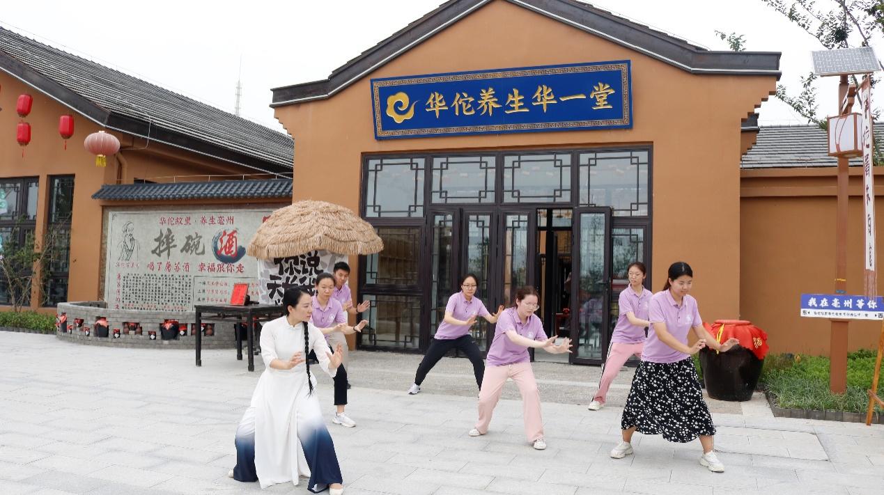 6月17日上午,實踐團成員到訪中國·亳州中藥材專業市場,華佗塑像佇立于廣場正中,亳州是一座“養生”之城,華佗在繼承古代導引養生術的基礎上,創編了一套養生健身功法,即現在國家非遺“華佗五禽戲”。
