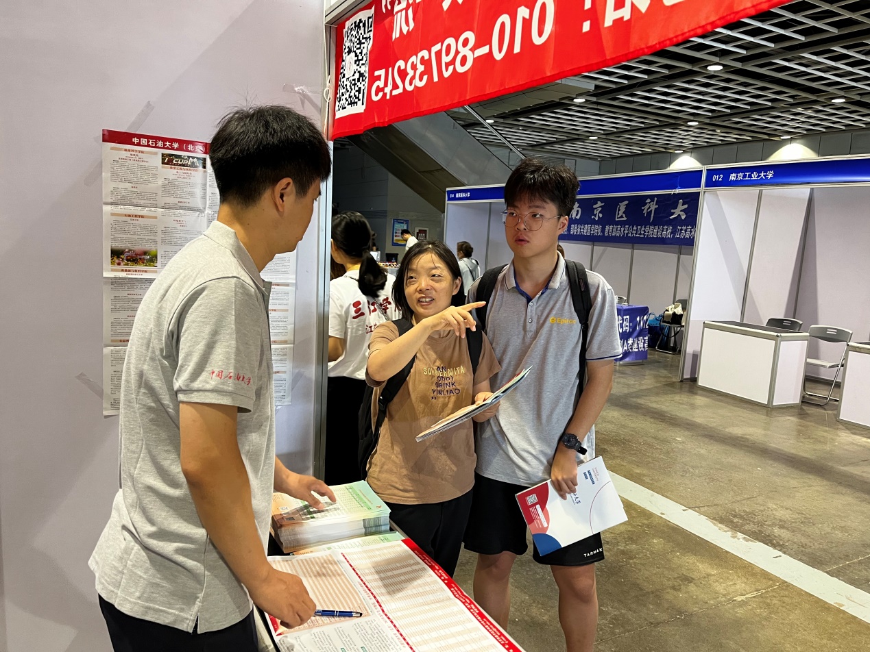 2023年6月27日,化工專業王曉輝和吳建勛兩位教師赴江蘇省南京市南京國際展覽中心參加2023年第十二屆江蘇高考名校見面會暨志愿填報大會,開展本科招生宣傳,吸引優質生源填報本校。此次本科招生宣傳活動由中教互聯(北京)教育咨詢有限公司組織,南京大學、中國石油大學(北京)、北京航空航天大學、南京航空航天大學、中國農業大學、中國藥科大學、南京理工大學、南京工業大學、河海大學、西南交通大學等100余所高校參加。此次招生宣傳中,我院教師通過展位現場咨詢和發放招生簡章等向南京市廣大高中畢業生和家長介紹了學校專業設置和育人特色,解答了學生和家長所關心的錄取分數、專業分布、就業方向、升學率、就業率、轉專業等事項,歡迎并鼓勵達到學校調檔位次的優秀同學選擇中國石油大學(北京)。