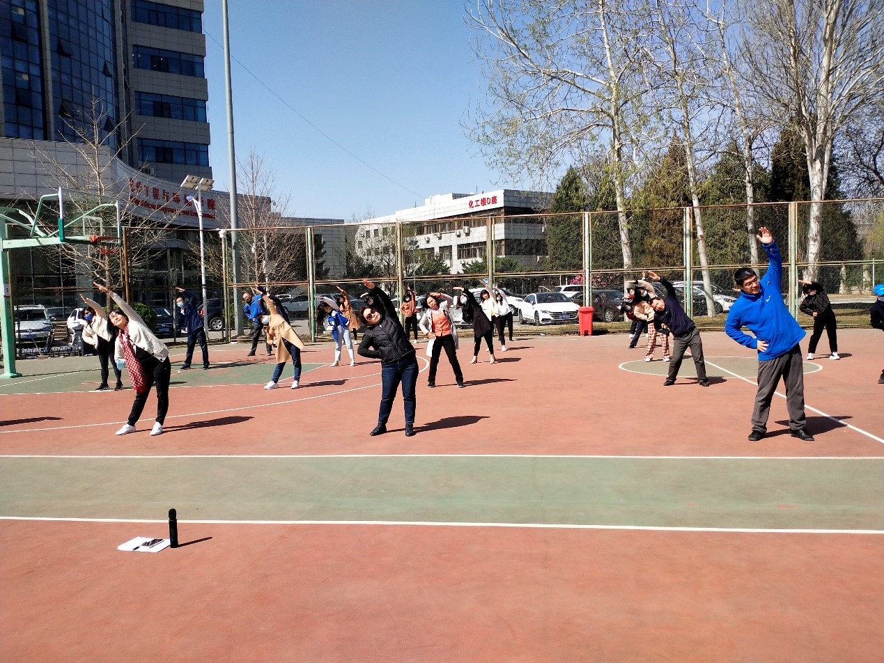 一年之計在于春!春天,大自然的陽氣升發(fā),一切都春意盎然,展現(xiàn)勃勃生機。隨著氣溫的回升和萬物的蘇醒,人也更加富有朝氣。為了響應(yīng)校工會恢復(fù)開展工間操活動通知要求,推動《教職工健康促進工作方案》落實落地,切實提高學(xué)院教職工身體素質(zhì),在陽春三月化工學(xué)院工會恢復(fù)每日上午10:05至10:15在化工樓下籃球場開展工間操活動,提出號召“每天鍛煉十分鐘,健康生活一輩子”,倡導(dǎo)學(xué)院教職工勞逸結(jié)合,培養(yǎng)健康生活方式。學(xué)院工會將根據(jù)教職工工間操出勤及完成質(zhì)量情況評定一、二、三等獎,通過物質(zhì)獎勵進一步激勵教職工參與工間操活動熱情。