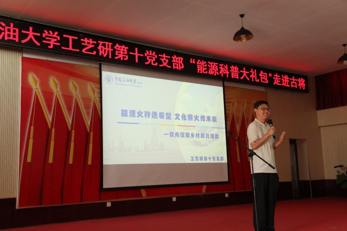 2025 年 6 月 7 日, 中國石油大學(北京)工藝研第十黨支部攜“能源大禮包”走進古將村,以科技下鄉形式拉開“能源火種燃希望,文化薪火傳未來”校地協同振興行動序幕?;顒右劳星鍧嵱推?、化工材料等領域的專業優勢,將能源科普實驗與低碳智慧化工前沿成果有機融合,為鄉村青少年及家長帶來兼具歷史厚度與科技溫度的沉浸式科學體驗。