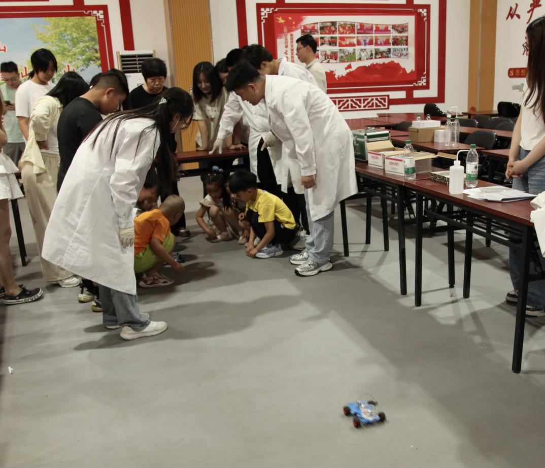 趣味科學實驗課堂以 "安全筑基、能源關聯、動手探秘" 為主線,將活動推向高潮。黨員們結合能源知識與原理展開實驗演示,孩子們在他們的指導及安全負責人的監督下動手參與,依次完成了“虹吸大揭秘”、“酸堿彩虹—會變色的紫甘藍”、“會吹氣球的瓶子”、“鹽水動力車”趣味實驗。特別在鹽水動力車實驗中,孩子們分組比拼,制作動力車,感受化學能向機械能的轉化。這一環節不僅充分展示了科學的魅力,還極大地激發了孩子們對能源科學的興趣,培養了他們的動手能力和科學思維。