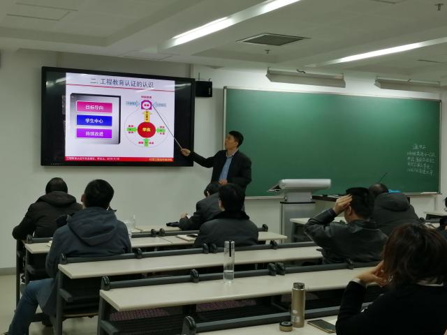 會上,吳志杰老師從“工程教育認證新發展”、“工程教育認證的認識”以及“認證材料的準備”三部分給學院參會老師進行了培訓,交流了近期工程教育認證一些新動向。黃星亮老師對報告內容進行了進一步的解讀,特別是對OBA和OBE理念進行了重點闡述。