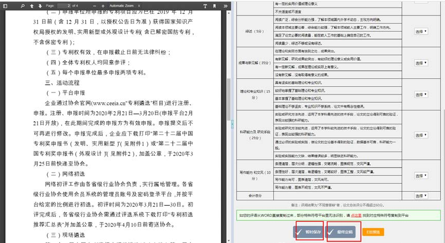 寫好評語跟各項選項,點擊“暫時保存”平臺只是保存您當前的記錄,不是最終定稿;點擊“最終定搞”后將不可能修改評書,如下圖所示: