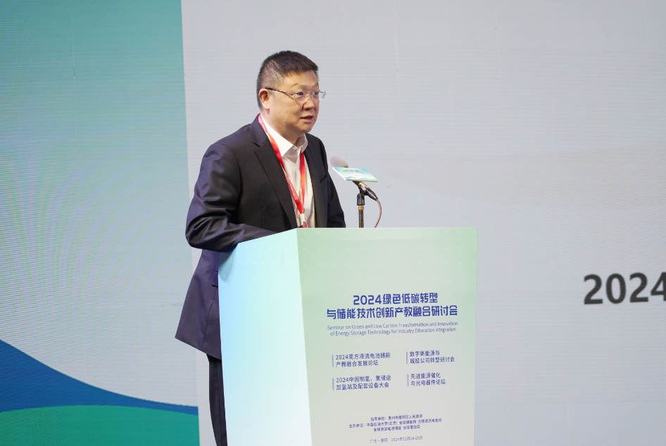 中國科學院院士、重質油全國重點實驗室主任、中國石油大學(北京)碳中和未來技術學院院長徐春明教授,作題為《液流電池能源局首臺套獲批及惠陽示范項目攻關規劃》的演講。徐春明說,光伏風電支撐煉化低碳轉型、氫能規?;?,均需儲能實現峰谷平抑,液流電池具備成本低、大規模、強安全三要素,是大規模長時儲能首選技術之一。惠陽將繼續與中國石油大學(北京)深度共建國家儲能技術產教融合創新平臺,打造為南方液流電池的科研、生產、示范高地。