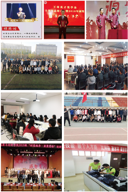 近年來,學生中涌現出了一批先進集體和個人。材料15-2班獲北京市先進班集體,連續兩次獲校“十佳班集體”,材料17-1獲校“十佳班集體”。我院學生艾克但·艾合買提榮獲第十四屆中國大學生年度人物入圍獎和2018度校級“十佳大學生”、李維軍榮獲2019年度校級“十佳大學生”。一批學生獲得北京市三好學生、優秀學生干部、先鋒杯優秀團員等榮譽稱號。