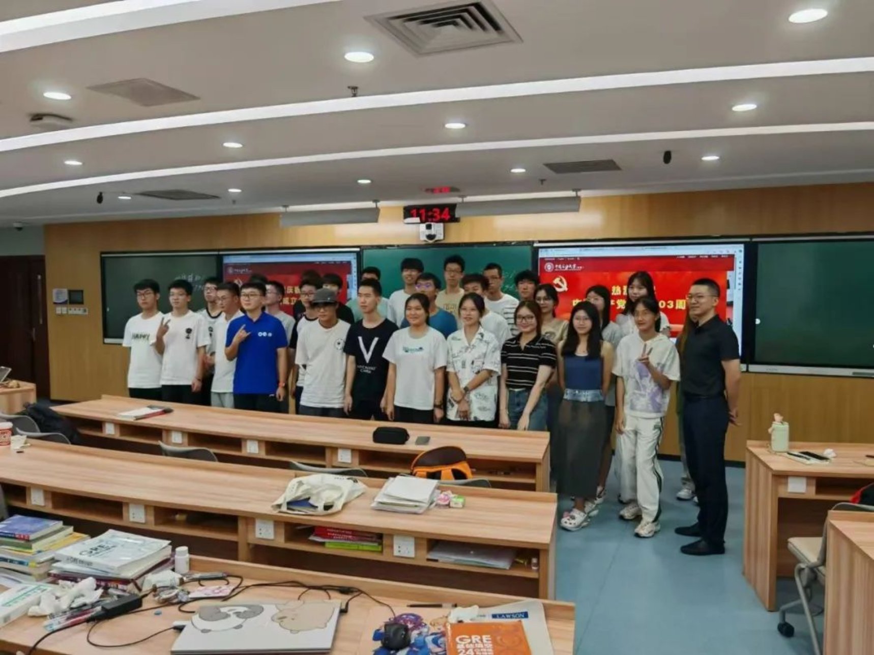 Вечером 21 августа, Ян Яодун организовал собрание для всех первокурсников Факультета наук о Земле. Накануне собрания наши одноклассники проявили инициативу и прибыли на место заранее. Студенты боролись за каждую секунду и перед встречей активно готовились к предстоящему экзамену CET-4. На встрече, Ян Яодун рассказал о будущем плане развития и предстоящих мероприятиях по военной подготовке. Ян Яодун, одновременно строгий и юмористический, очень понравился студентам, и зал был полон смеха.