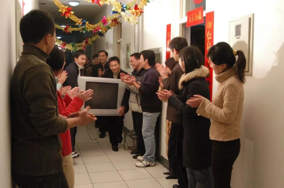 2005年除夕校領導李秀生、吳小林與留校學生在潤杰宿舍包餃子。