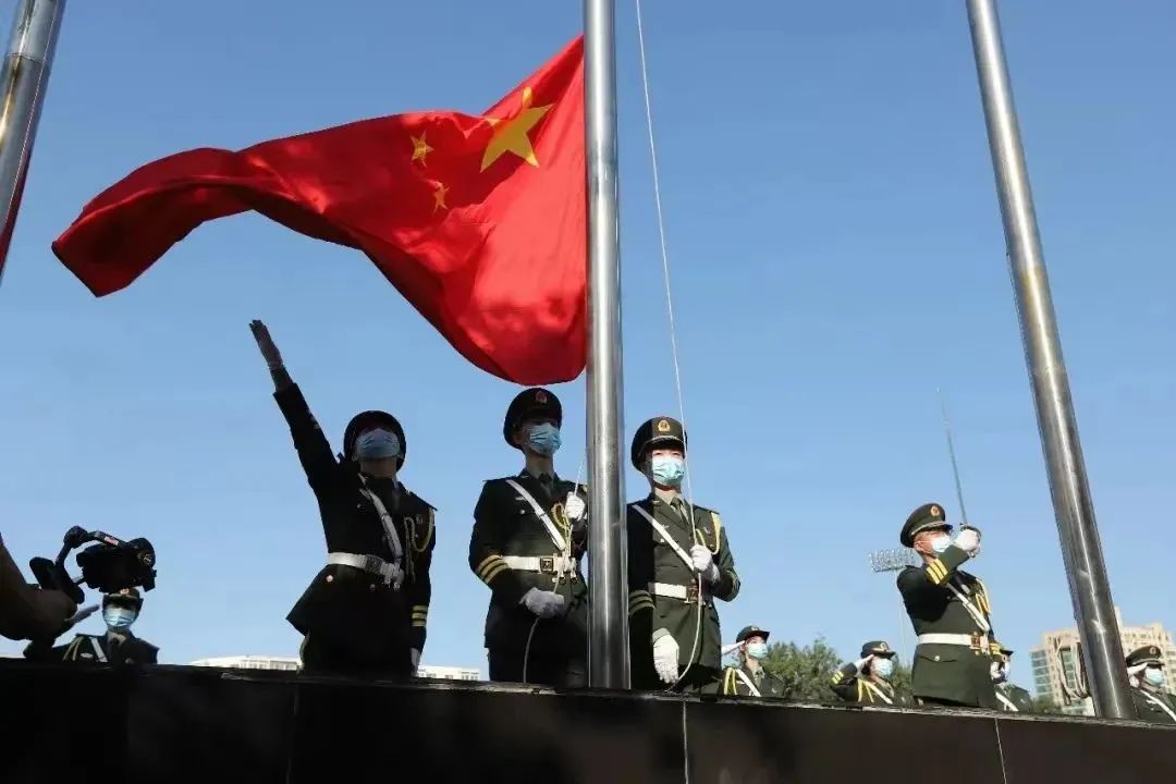 在中國石油大學(北京)克拉瑪依校區紅旗操場舉行的2017級新生軍訓結訓典禮