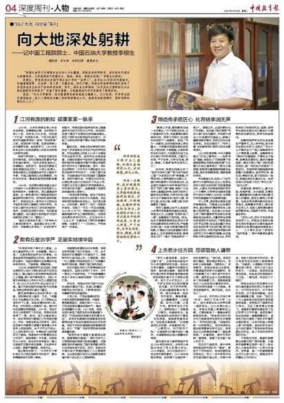 近日,中國教育報《深度周刊·人物》版面以“向大地深處躬耕”為題,整版報道了中國工程院院士中石大李根生教授的事跡。
