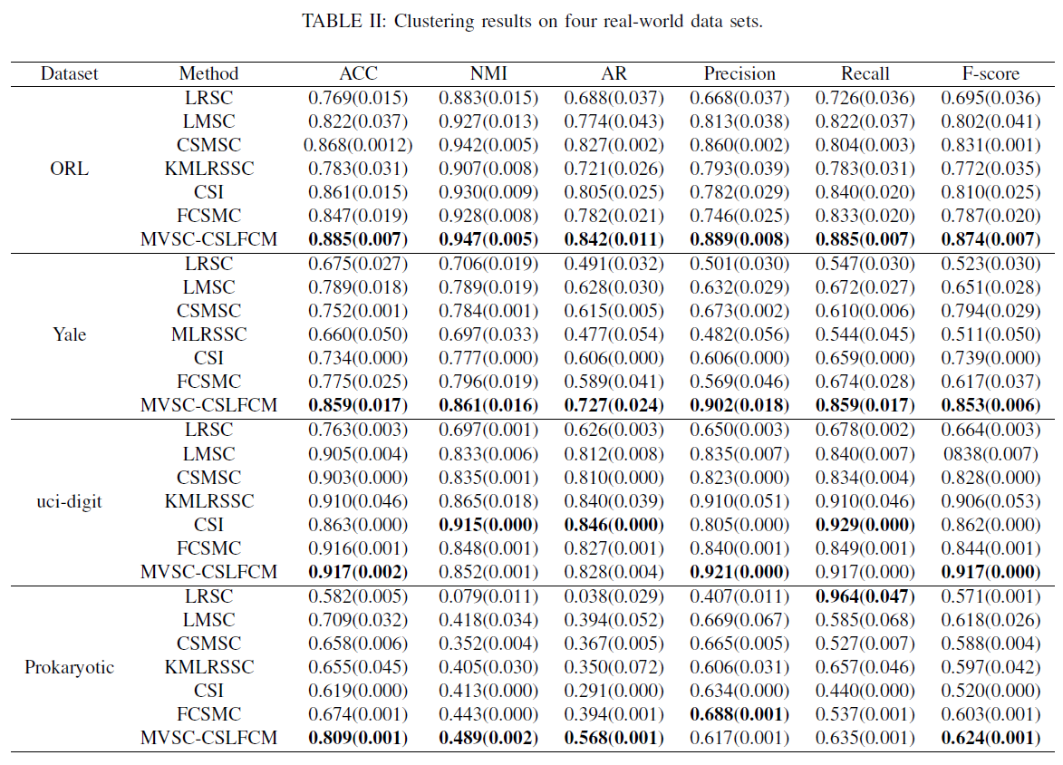 (1)通過同時(shí)考慮多個(gè)視圖的一致性與互補(bǔ)性信息,我們提出的隱因子提取算法能夠幫助MVSC-CSLFS獲取更加緊湊且完備的隱表示,且能將隱表示中這些耦合的信息分離,使隱表式有更為明確的語義信息。