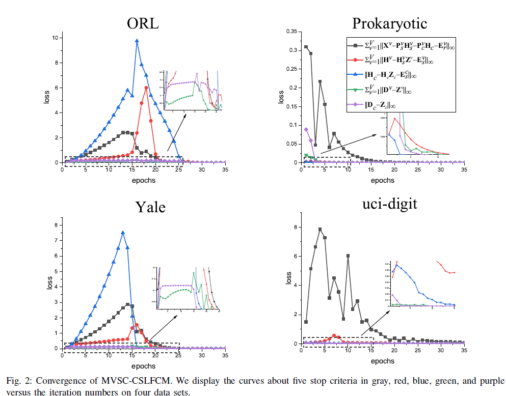 本文基于以上動(dòng)機(jī),提出了一種能夠同時(shí)挖掘并分離多個(gè)視圖中相互耦合的一致性與互補(bǔ)性隱表示的矩陣因式分解方法。其中,一致性表示指所有視圖共享的信息,互補(bǔ)性表示則是各個(gè)視圖獨(dú)有的卻能夠互相彌補(bǔ)其余視圖信息缺失的特有信息。基于此,本章進(jìn)一步提出一種子空間學(xué)習(xí)策略-子空間級(jí)分層策略:基于一致性與視圖特有隱因子與子空間的多視圖子空間聚類(Multi-View Subspace Clustering with Consistent and view-Specific Latent Factors and Subspaces,MVSC-CSLFS)。MVSC-CSLFS為不同視圖的一致性與互補(bǔ)性表示設(shè)計(jì)了不同自表示重構(gòu)方法,即分別用Frobenius范數(shù)與核范數(shù)來約束互補(bǔ)性與一致性隱表示對應(yīng)的子空間表示矩陣,此方法通過為不同性質(zhì)的隱表示設(shè)計(jì)更合適的子空間聚類策略,從而獲取更佳的聚類效果。此外,本章還為提出的方法引入了自適應(yīng)的動(dòng)態(tài)權(quán)重,從而可以在不同學(xué)習(xí)階段衡量各個(gè)視圖對學(xué)習(xí)的貢獻(xiàn),該機(jī)制也可以提升模型抵抗噪聲和不可靠視圖所帶來的影響。最后,本章將采用基于增廣拉格朗日乘子的交替方向最小化算法來求解我們提出的模型,并通過與多種基準(zhǔn)算法在大量的真實(shí)數(shù)據(jù)集中的對比來驗(yàn)證所提出算法的效果。本章研究的主要貢獻(xiàn)如下所示: