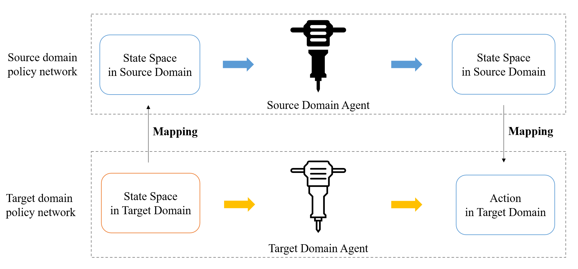對于策略網絡,其定義為,即對于當前狀態輸出一個確定性動作。從本質而言,策略網絡是一個非線性策略逼近器,用于對策略模型π(a|s)進行逼近。因此,對策略網絡的遷移實質上是對源領域的狀態-動作關系進行遷移。策略網絡具體的遷移過程如圖4所示。