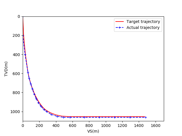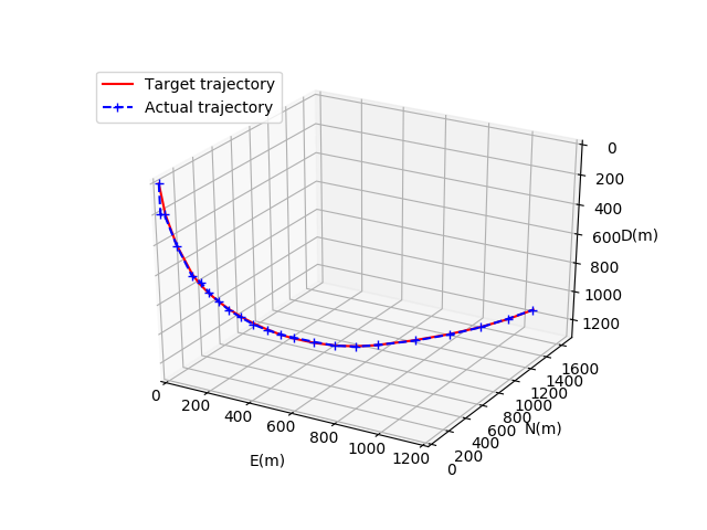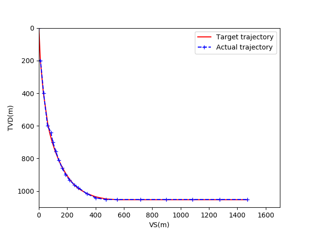 可以看出,在收斂后兩模型的跟蹤效果基本一致,均能完成對預設井眼軌道的跟蹤任務。