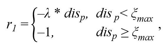 其中,r1代表對預設軌跡的跟蹤獎勵,r2代表在目標油層中行進的獎勵,λ作為調節兩獎勵權重的系數。r1與r2獎勵的計算公式如下所示: