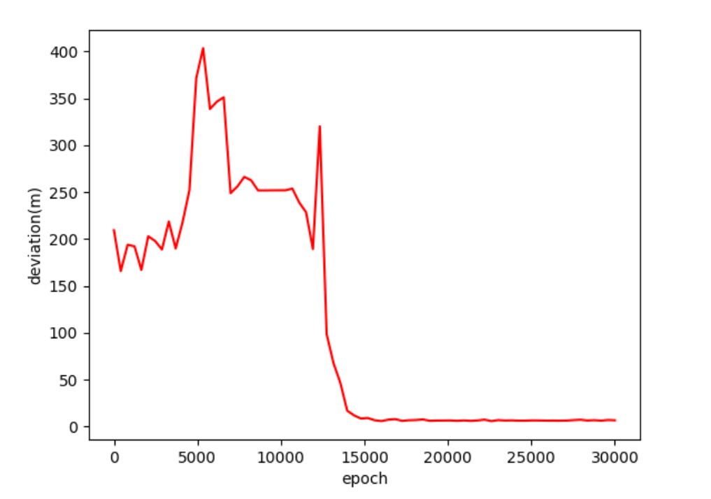 在不確定干擾的約束下,井眼軌跡跟蹤控制算法在15000步左右逐漸收斂。收斂后的井眼軌跡跟蹤控制算法的井眼軌跡最大偏移距離為3m左右,中靶率約為97%。實驗結果表明,基于遷移學習的井眼軌跡自適應跟蹤控制算法具備良好的抗干擾能力,能夠在干擾約束下完成較高精度的軌跡跟蹤任務,成功引導井眼軌跡到達地層中的靶區。