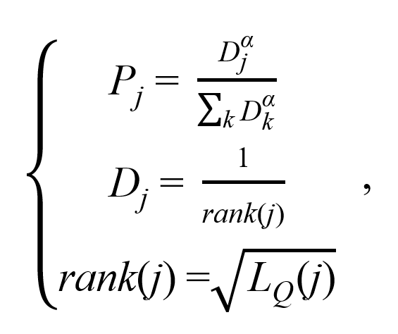 在本文所設計的基于優先級的經驗回放機制中,經驗的抽樣并非隨機從經驗池中進行抽取,經驗抽樣的概率分布如下所示: