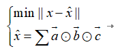Step2,張量分解。本文采用連續(xù)rank-1的CP分解方法,即每次分解用秩為1的張量來擬合原始張量,然后將原始張量與擬合后的張量做差得到剩余張量,對剩余張量再繼續(xù)執(zhí)行秩為1的CP分解,直到達(dá)到迭代次數(shù)或連續(xù)2次分解誤差變化不大即可停止,其中誤差計算如下所示: