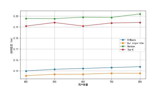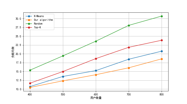 圖2 隨著用戶數量不斷增加,不同方法的性能對比。